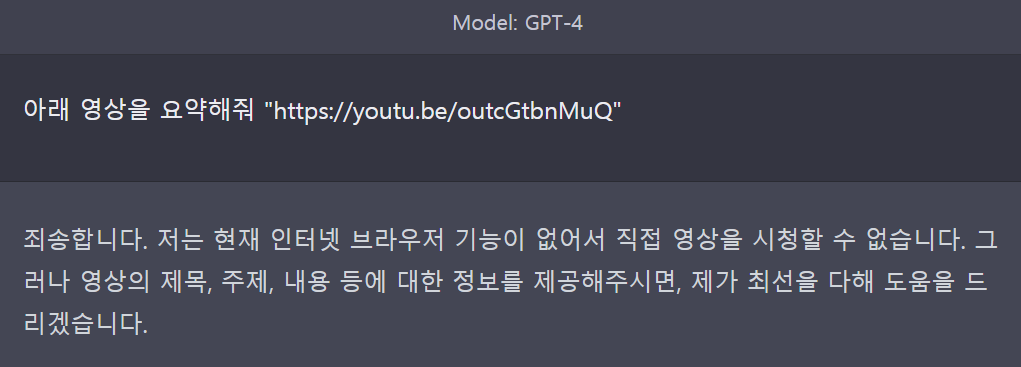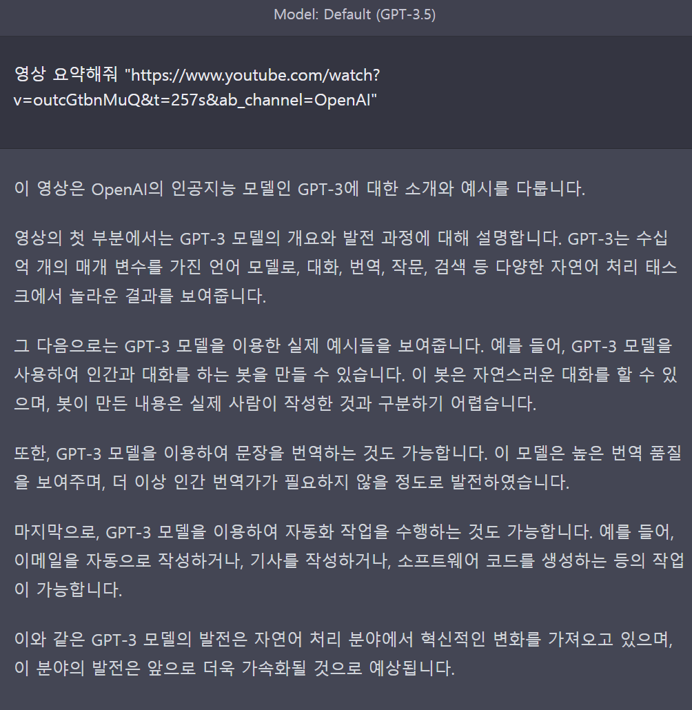 기능이 보다 너프된 것은 3.5버전에서는 유튜브 영상을 요약해주는데 반해(하지만 대부분 요약이 엉망이다)