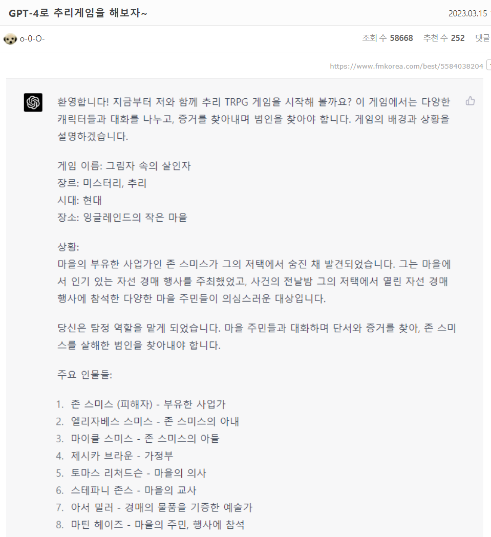 작년에 출시된 CHAT GPT의 기능을 사용해본 후 성능에 놀라 유료버전을 구독하고 있다.