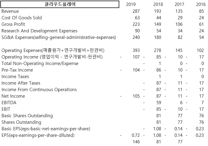 2019년 9월 뉴욕증권거래소(NYSE)에 기업공개를 했다. 주당 15달러로 공모하였는데 상장 첫날 20%이상 급등하였다고 한다. 하지만, 작년에 함께 상장한 우버(Uber)나 리프트(Lyft), 슬랙(slack)이 실적에 대한 의구심이 커지면서 하락하자 클라우드 플레어의 주가도 이와 유사하게 한동한 지지부진하였다.