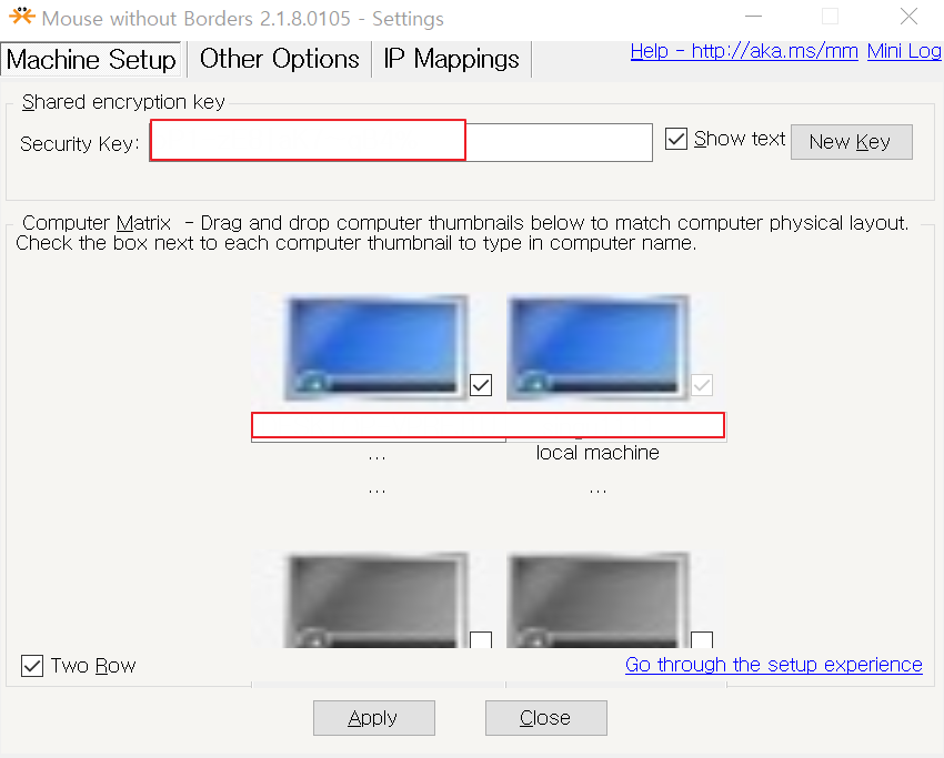 한쪽 컴퓨터에서 시큐리티 키를 발급하고 다른 컴퓨터에서 그것을 입력하며