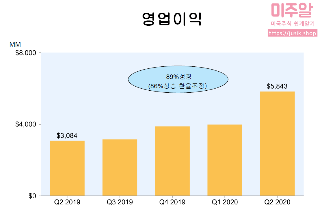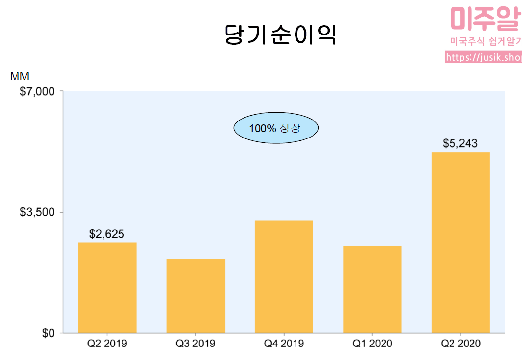 아마존이 2020년 2분기 실적을 지난 7월 31일날 발표했다. 전년 동분기 대비 매출은 40%성장하고 영업이익은 89%성장, 당기순이익은 100%성장하였다. 시장에서 생각지도 못한 어닝서프라이즈가 나왔다. 아마존 프라임회원이 크게 늘었고 클라우드 성장세도 견조하다. 지난 몇년간의 과감한 투자가 언택트를 만나면서 분출하는 모양새다.