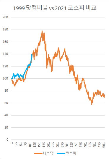 1999년 닷컴버블과 2021 코스피 상승 비교